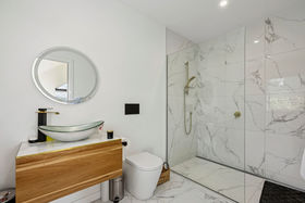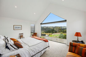 Upstairs ,or if you prefer - accessed via the lift, three bedrooms are positioned to capture light and outlook. The master suite is particularly striking, featuring a dramatic picture window, walk-in wardrobe and a heated tiled ensuite. The central family bathroom enjoys sea views and includes a beautifully appointed bathtub alongside a separate shower. Floor-to-ceiling windows, angled architectural detailing and thoughtfully layered lighting enhance the sense of scale and draw in natural light, while the home's north-west orientation ensures long afternoons and golden evening sun.