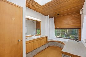 Upstairs are multiple bedrooms (3-4), a den/office, bathroom and an outdoor terrace that spans the length of this wing capturing the essence of mid-century living at its finest. The upstairs retreat offers the perfect spot to unwind and watch the world go by while taking in stunning views.